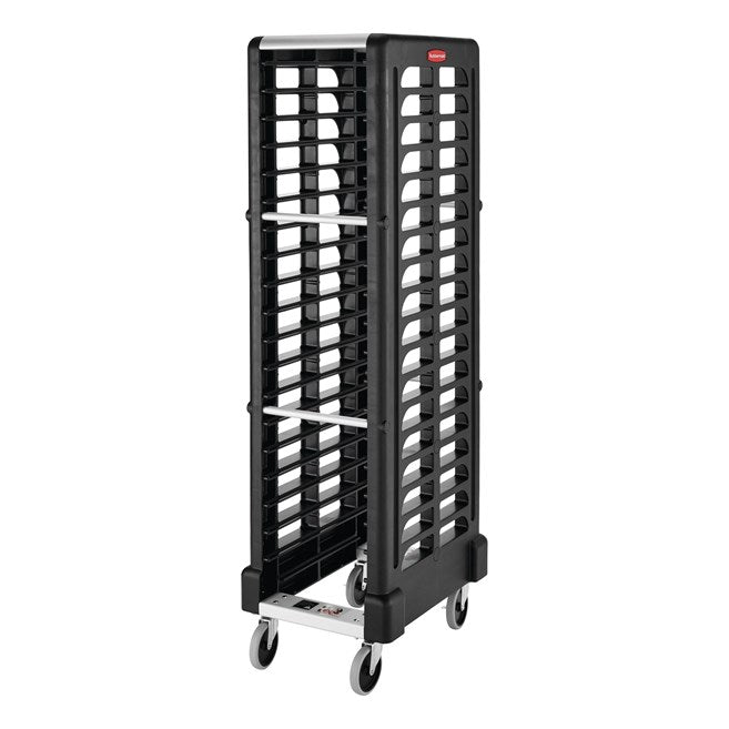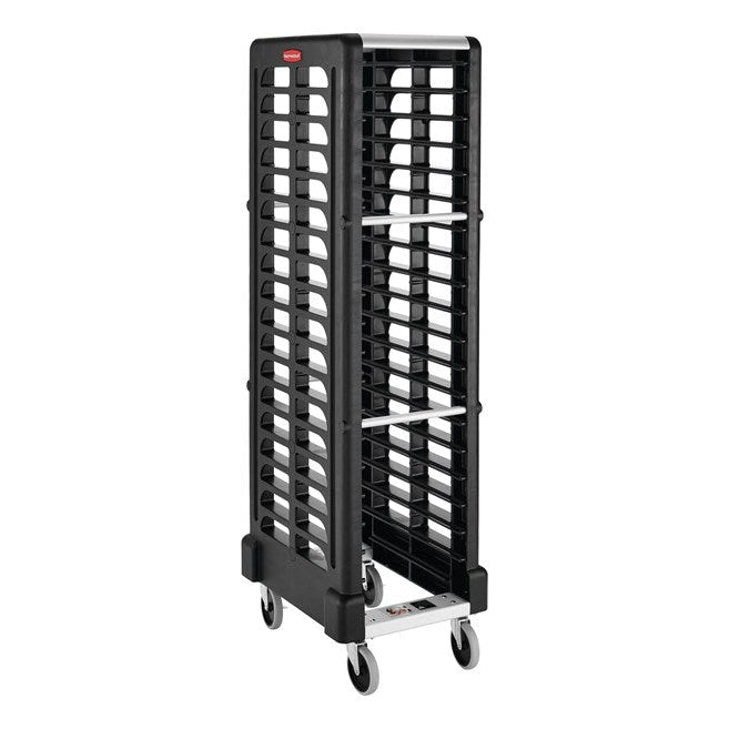 Los bastidores y carros comerciales de Rubbermaid aumentan la eficiencia al maximizar el espacio, el transporte y el almacenamiento.