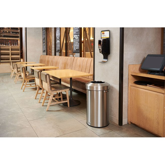 Con un diseño clásico y acero inoxidable resistente a las huellas dactilares, el contenedor de residuos Refine encaja perfectamente en cualquier espacio comercial para lograr una apariencia discreta que mejora el ambiente general. Toda la construcción metálica proporciona una estética moderna y mantiene sus instalaciones con un aspecto limpio.