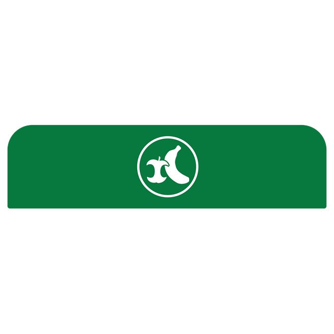 El letrero para bote de basura para receptáculo de desechos Rubbermaid Commercial Configure™, vertedero, 33 galones ayuda a aumentar el cumplimiento de la gestión de desechos. Un tono verde brillante y vibrante y un ícono fácil de entender indican claramente qué tipo de desechos se deben depositar en el bote de basura. El cartel se fija fácilmente al cubo de basura en cuestión de minutos por 1 persona.