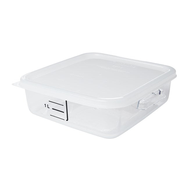 Tapa resistente a fugas para un contenedor de almacenamiento cuadrado que ahorra espacio.